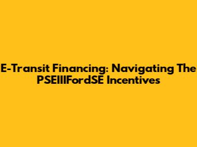 E-Transit Financing: Navigating The PSEIIIFordSE Incentives