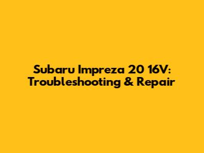 Subaru Impreza 20 16V: Troubleshooting & Repair